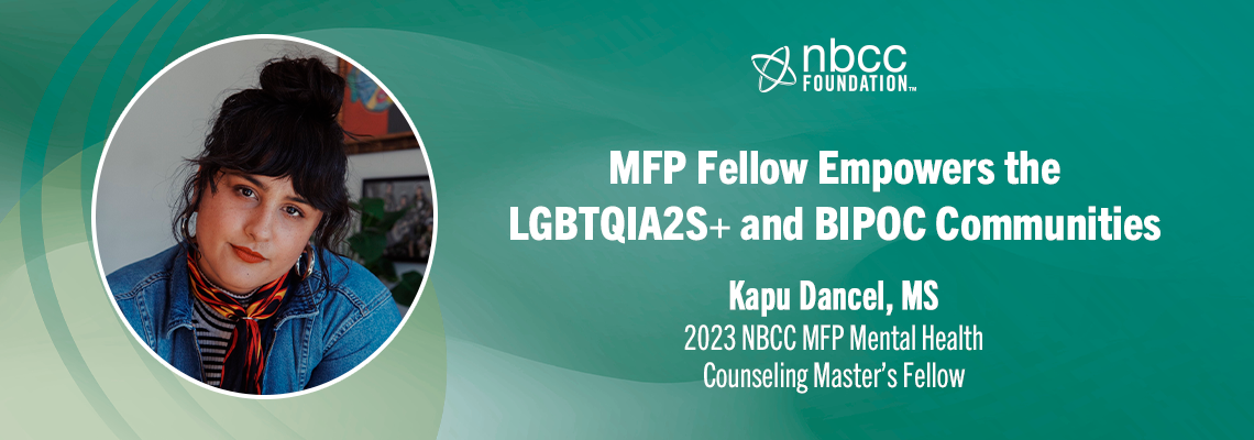 Like many others, the road to becoming a counselor hasn’t been easy for 2023 NBCC MFP Mental Health Counseling Master’s Fellow Kapu Dancel, MS. Though she planned to move toward counseling immediately following undergraduate school, her plans were derailed, not only by the global pandemic but by facing a challenging journey of personal healing.